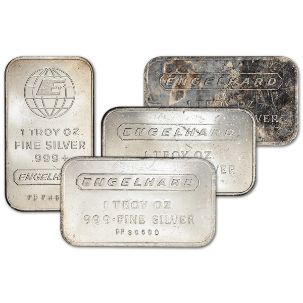 1 oz Engelhard silver bar, Engelhard silver bullion, vintage silver bar 1 oz, .999 fine silver bar, collectible silver bars, Engelhard logo bar, secondary market silver, investment silver bars, rare silver bullion, historic silver refinery bars