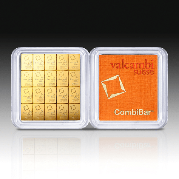 The 20 Gram Gold CombiBar By Valcambi Combines Investment Security With Unmatched Flexibility. Struck From 20 Grams Of .9999 Fine Gold, This Innovative Bullion Product Is Designed To Be Easily Divided Into 20 Individual 1 Gram Gold Bars, Allowing Investors To Use Or Trade Smaller Units When Needed.