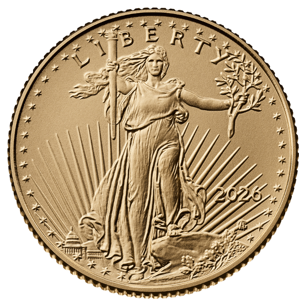 Secure the 2026 1/10 oz American Gold Eagle Coin (BU) today and invest in one of the most liquid and trusted gold bullion coins produced by the U.S. Mint.