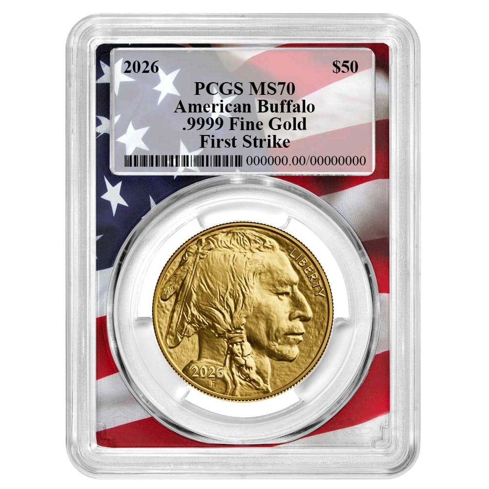 You can now acquire the 2026 1 oz American Gold Buffalo from the earliest releases of the year. Each coin is certified as a perfect MS-70 by PCGS and sealed in an attractive PCGS Flag Frame holder with the coveted First Strike designation.