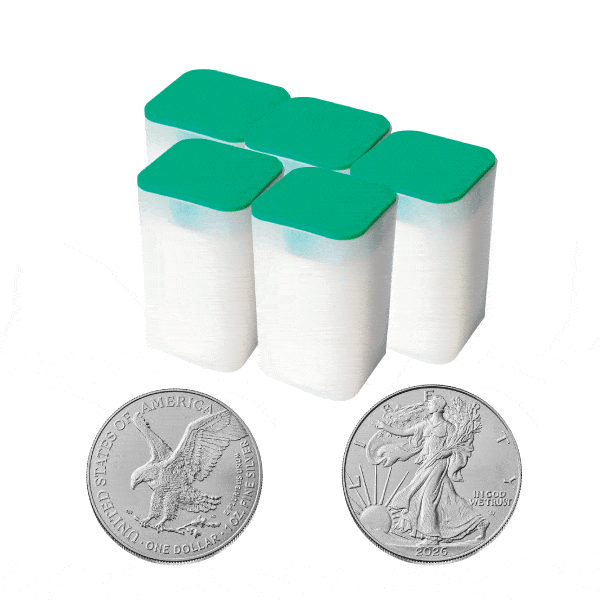 - 2026 Silver Eagle Tubes comes with 5 tubes of 20 coins, each contain 1 oz of .999 Fine Silver